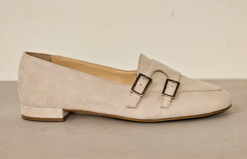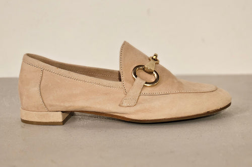 Mocassino Scamosciato almond con fibbia oro f.do gomma