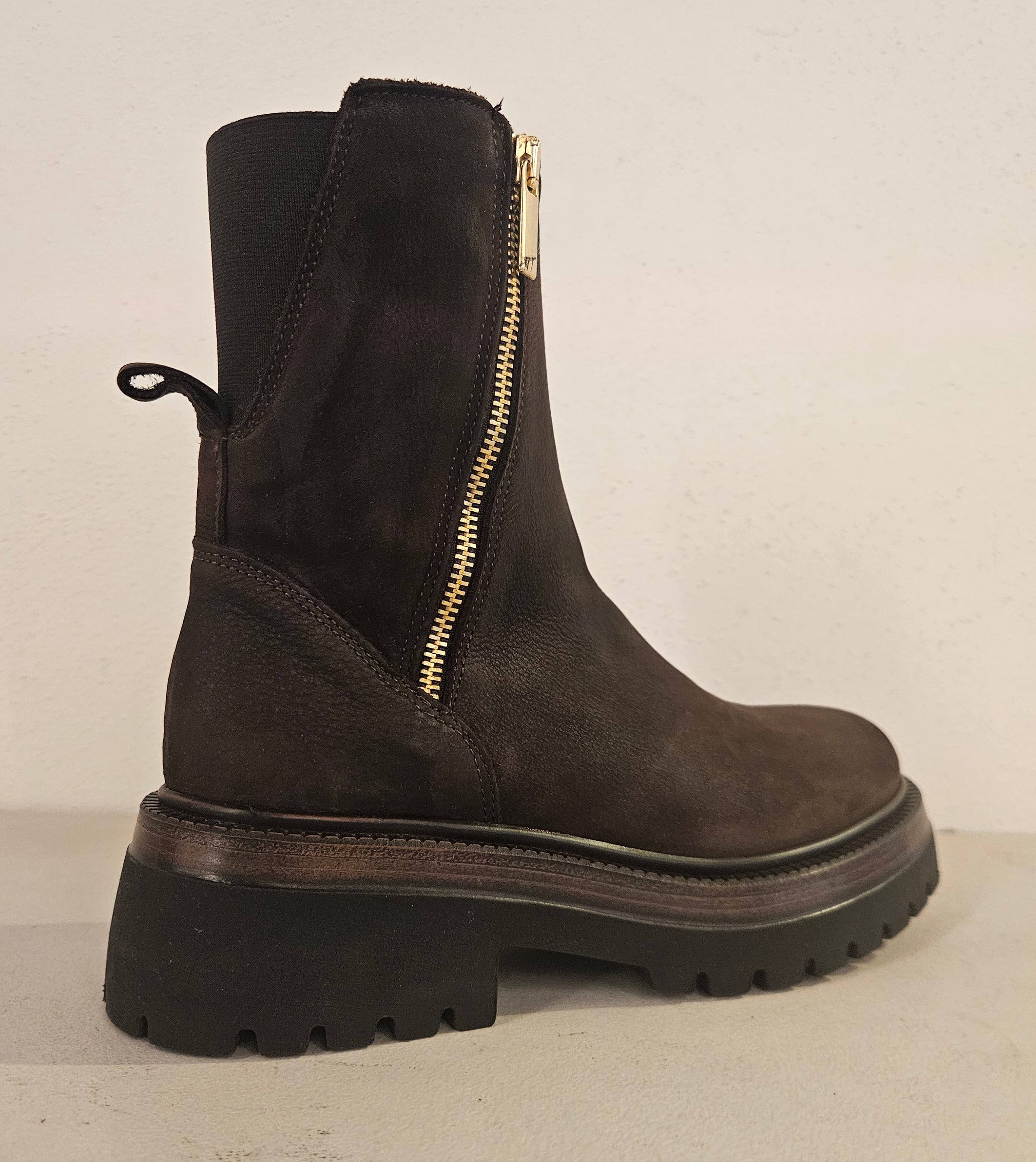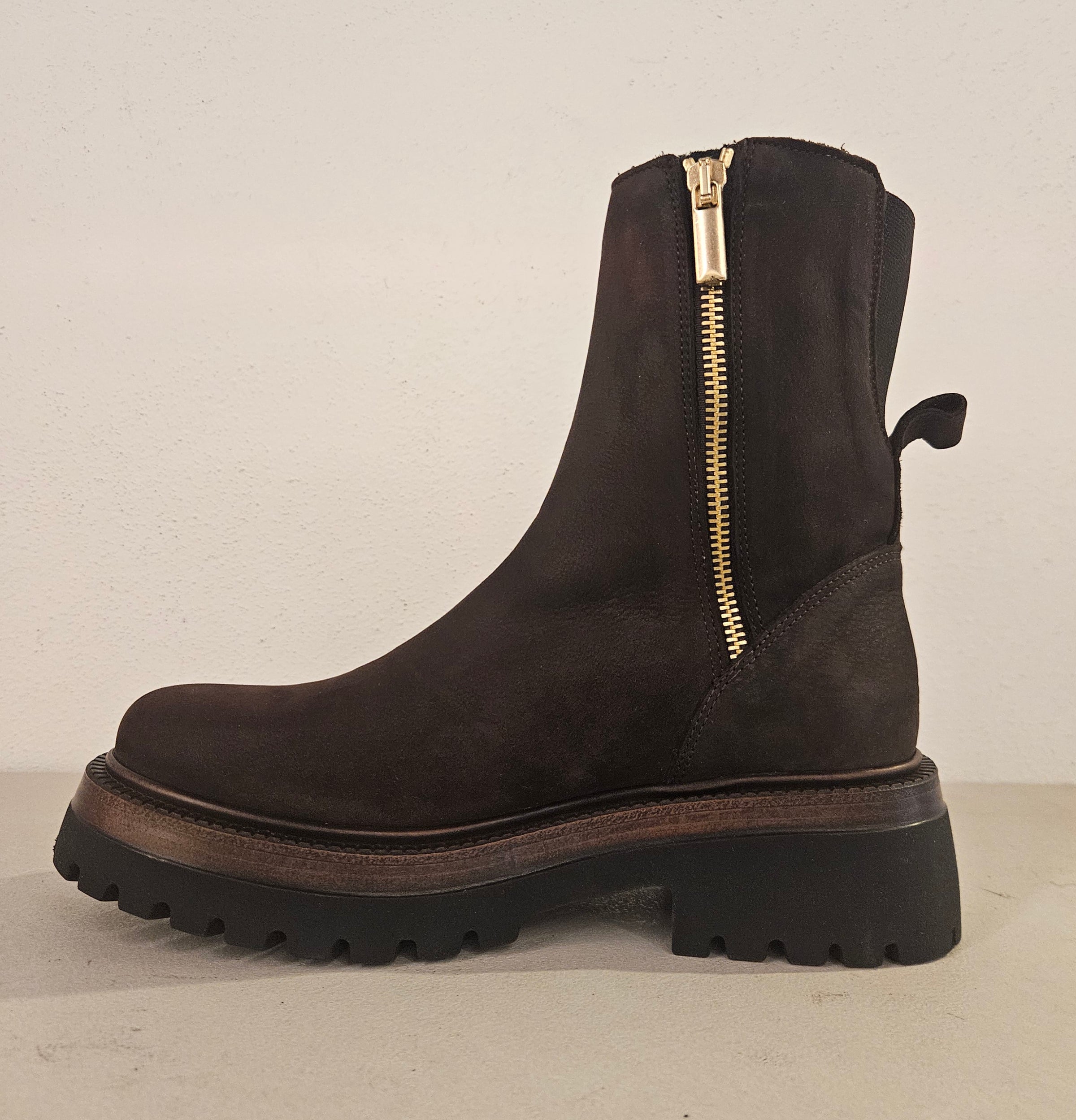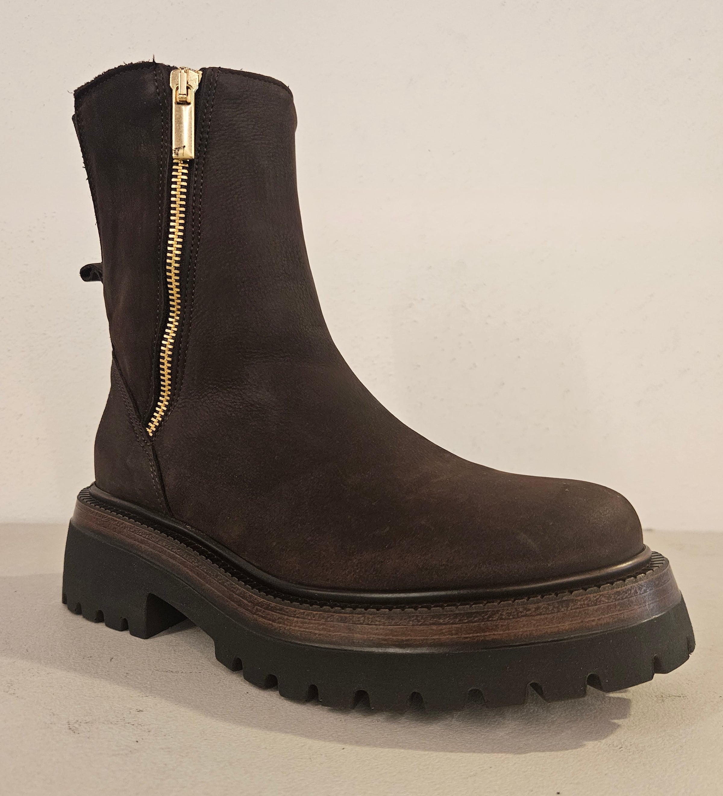 Stivaletto in pelle testa di moro doppia zip laterale