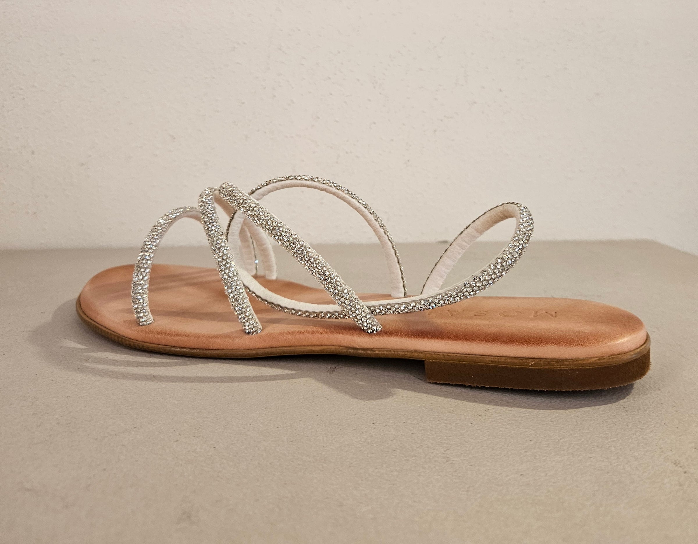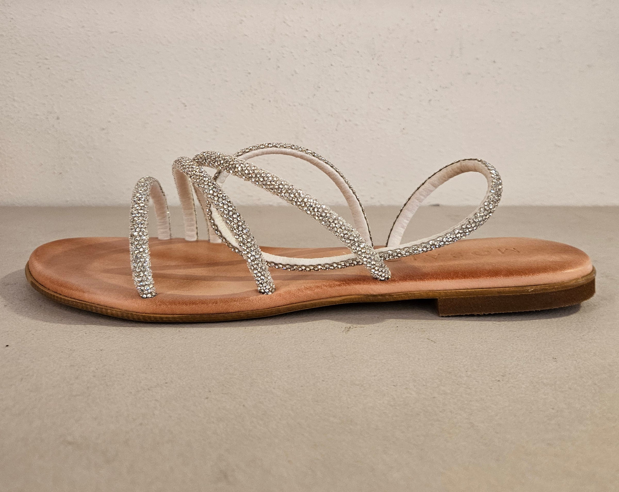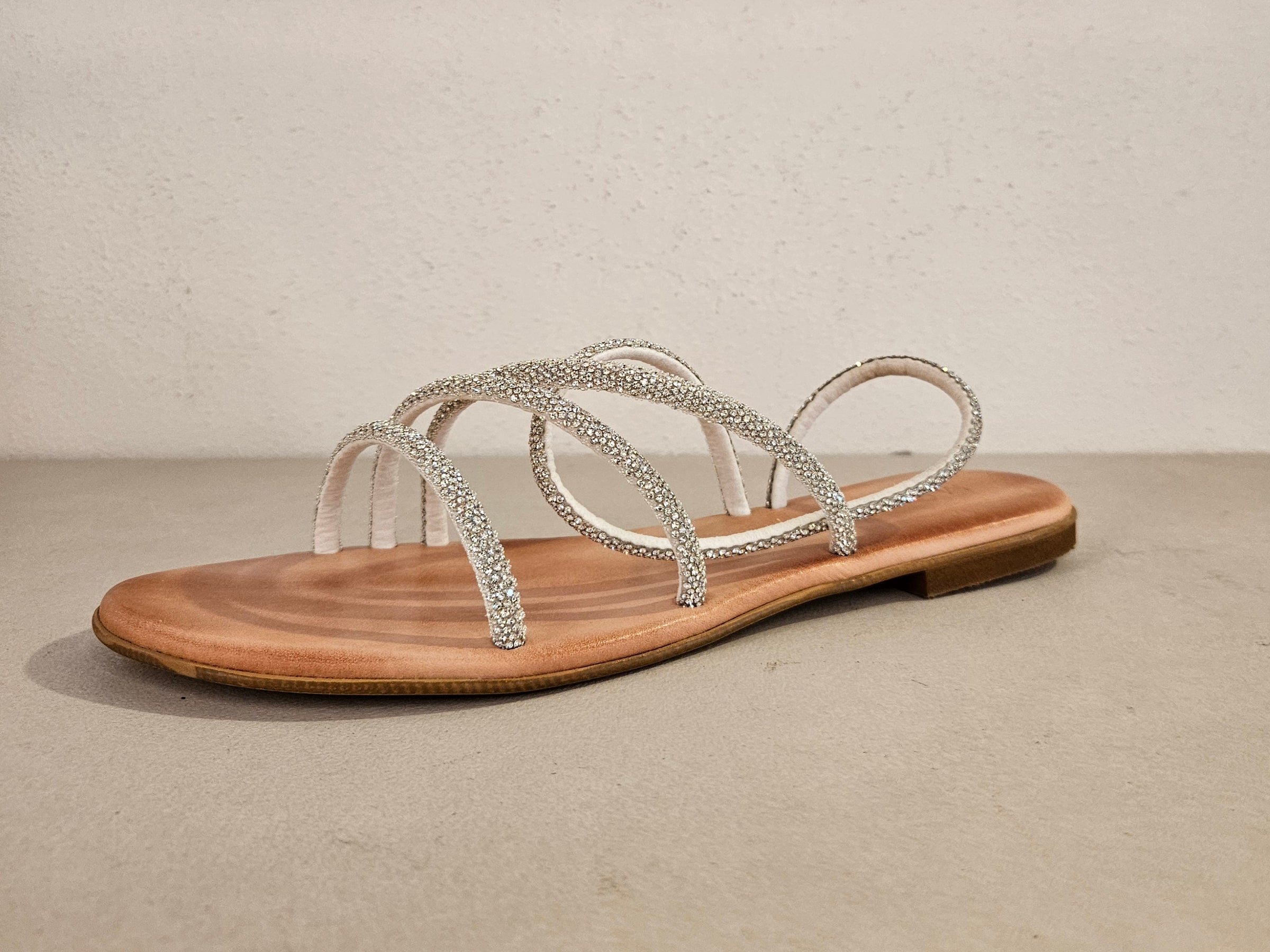 Sandalino in pelle in strass silver