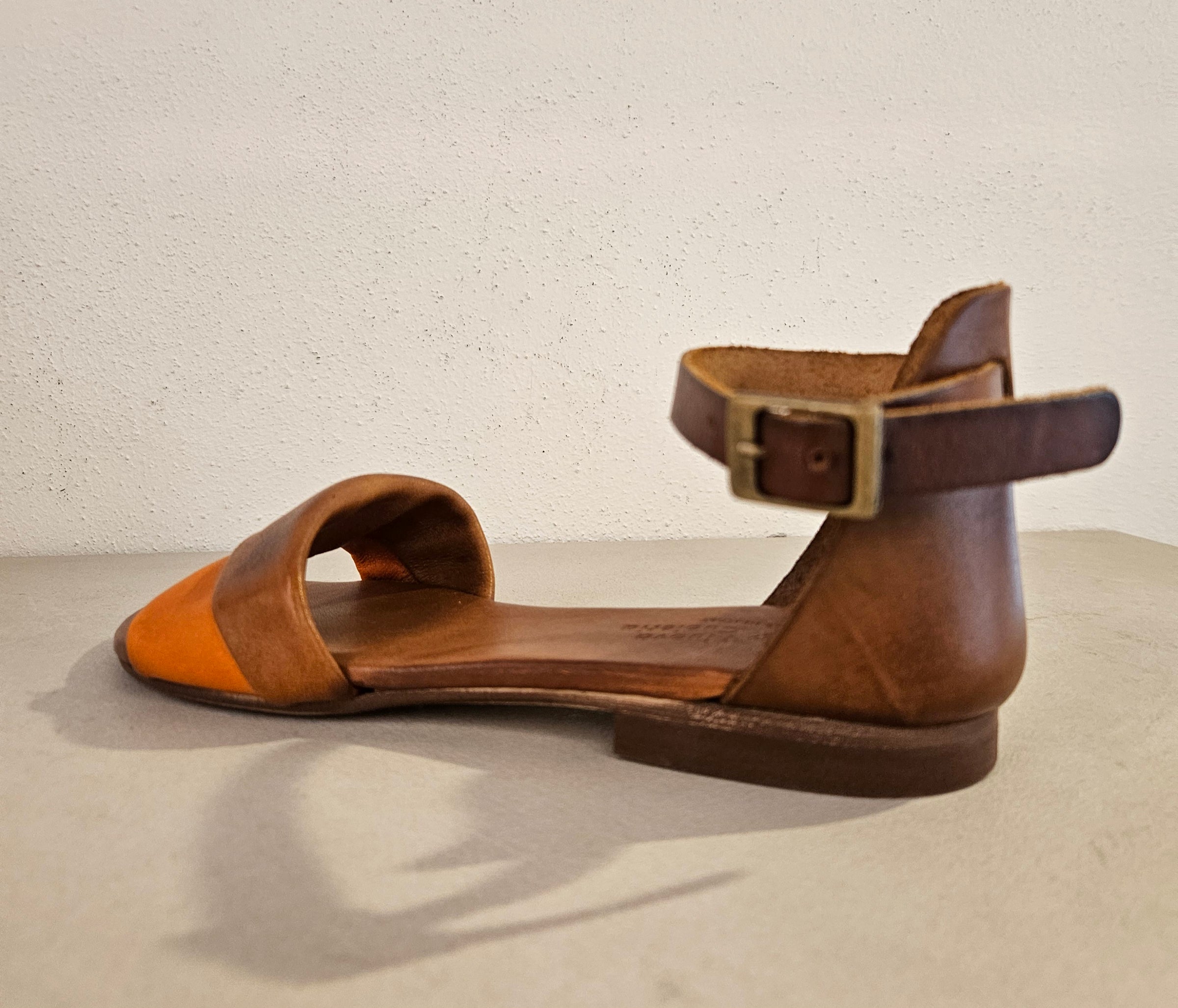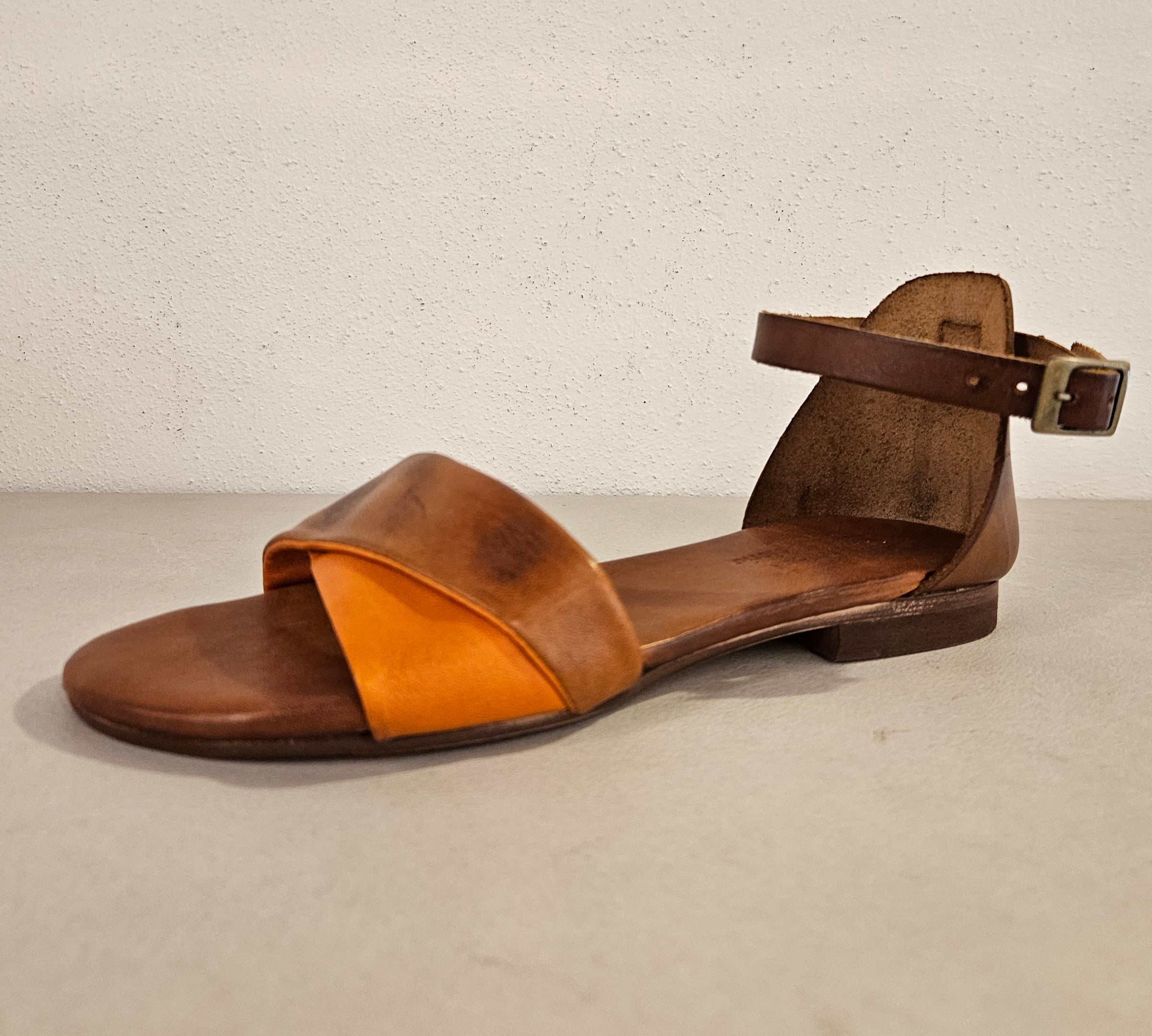 Sandalino in pelle Color cuoio fascia morbidissima arancione e cuoio cinturino in caviglia