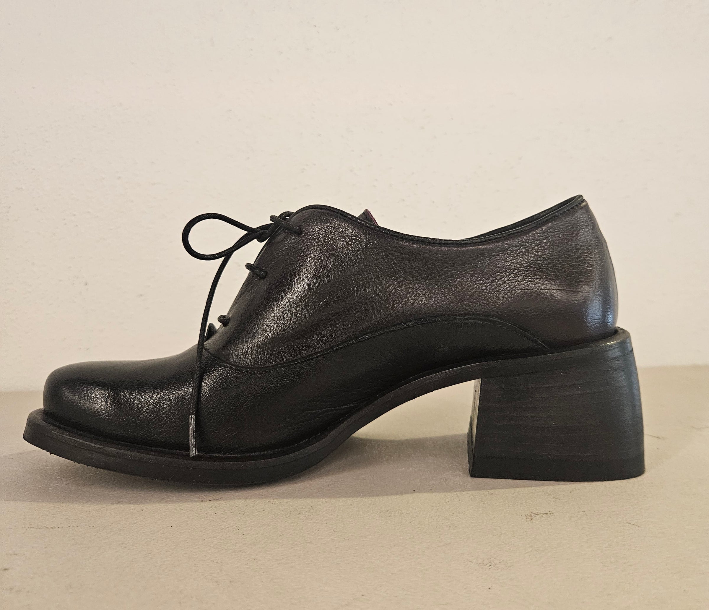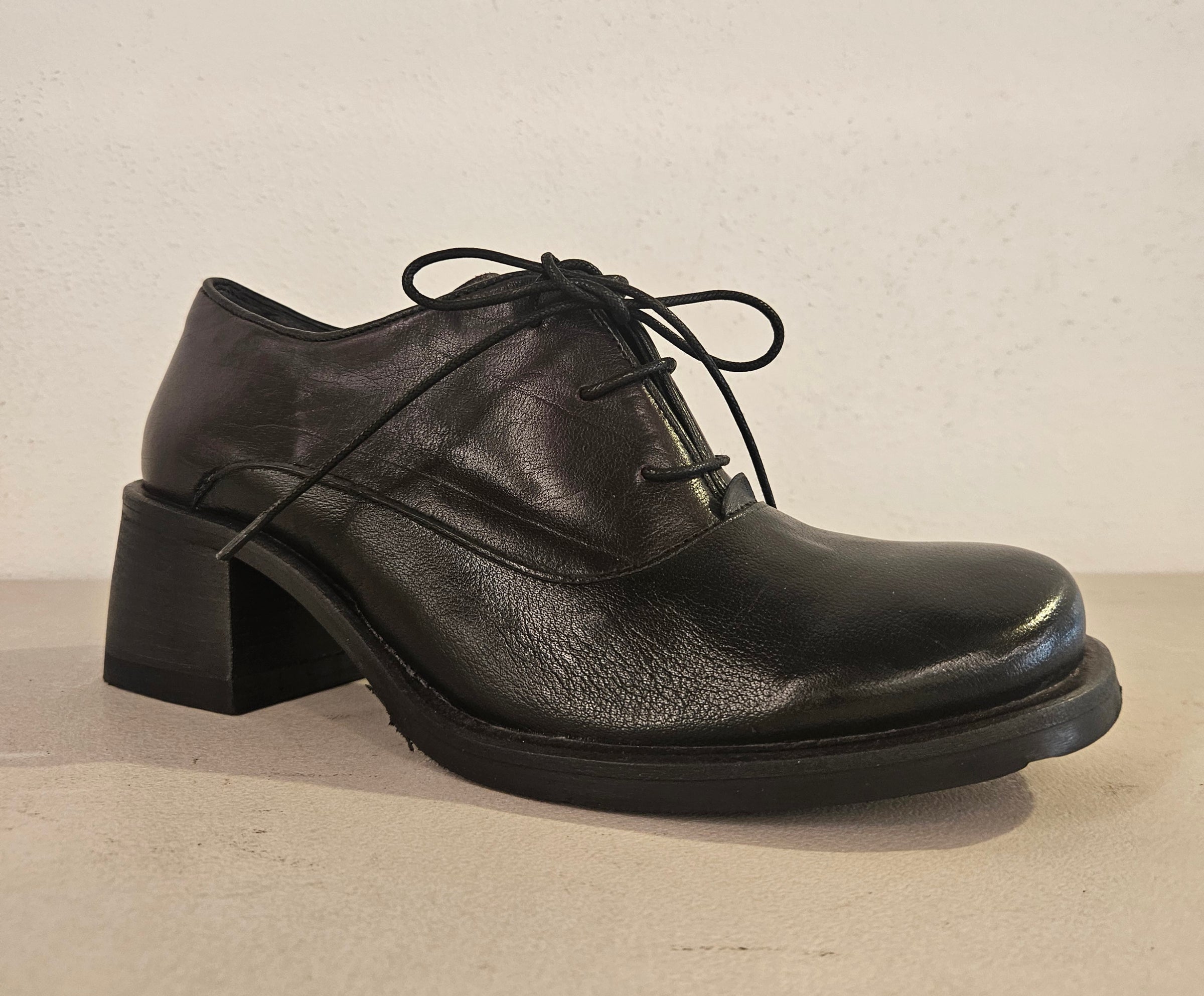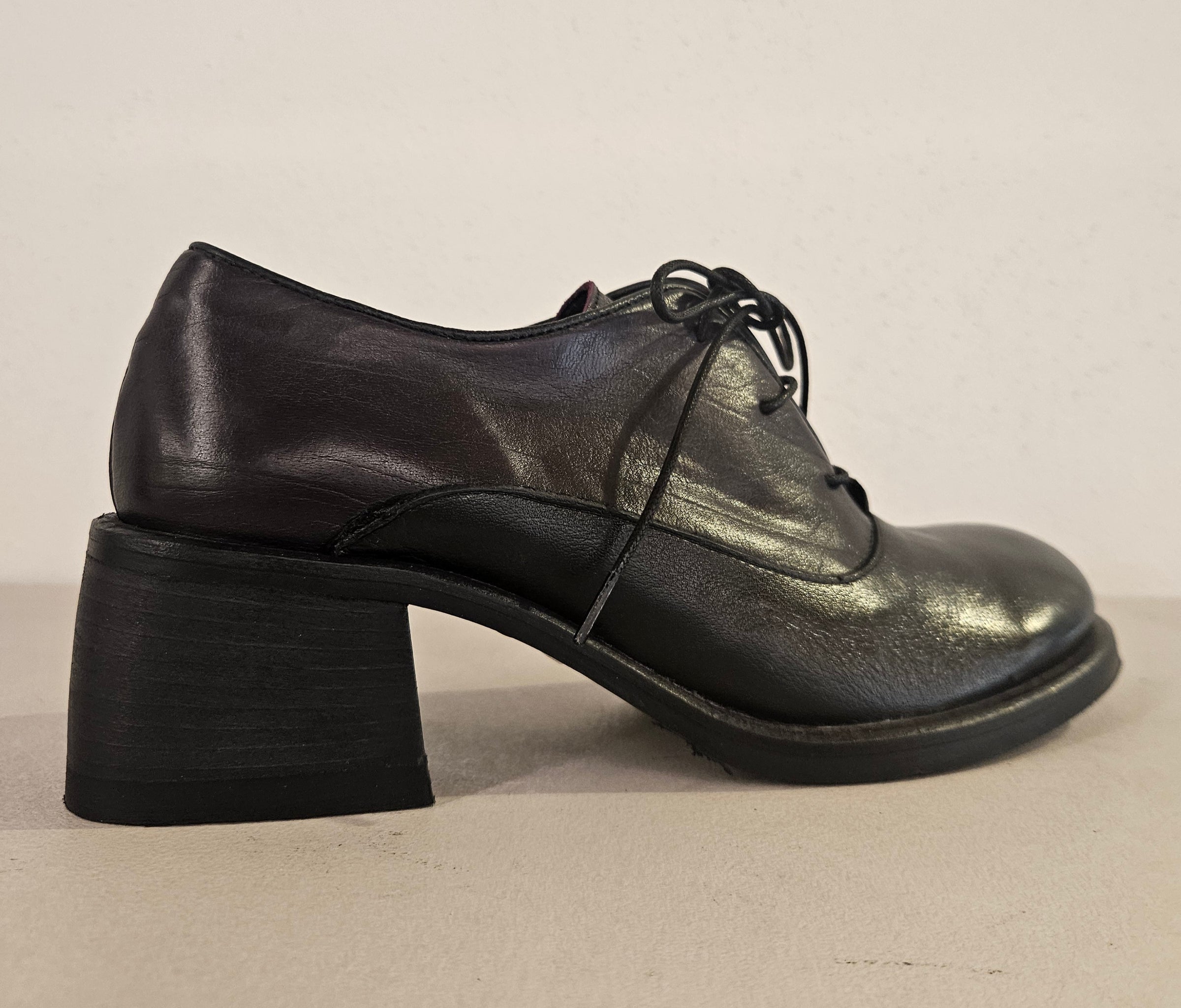 Scarpa stringata in pelle carly nero/vino tacco 40 fondo gomma