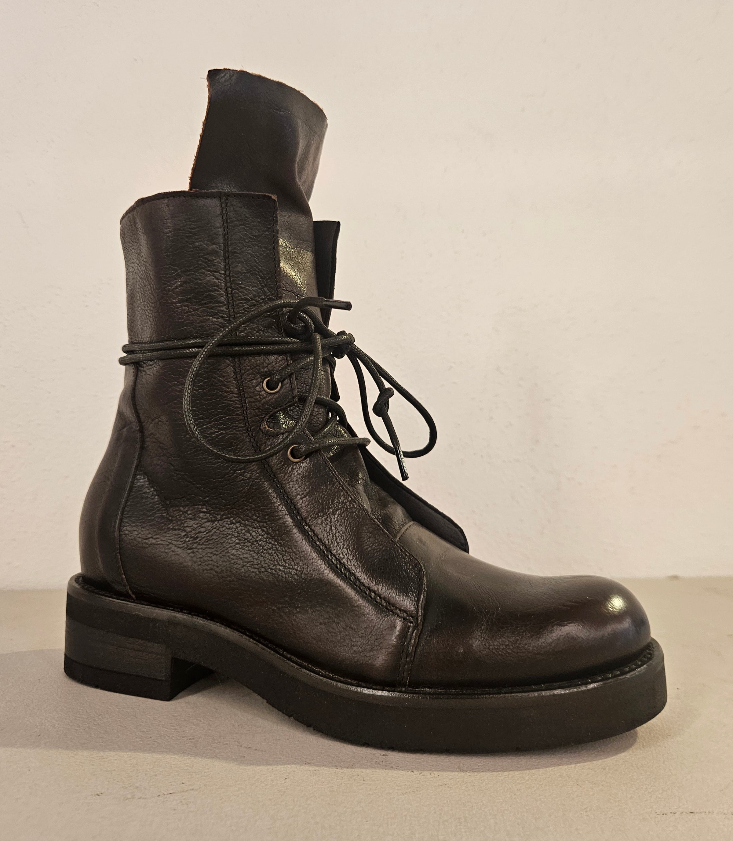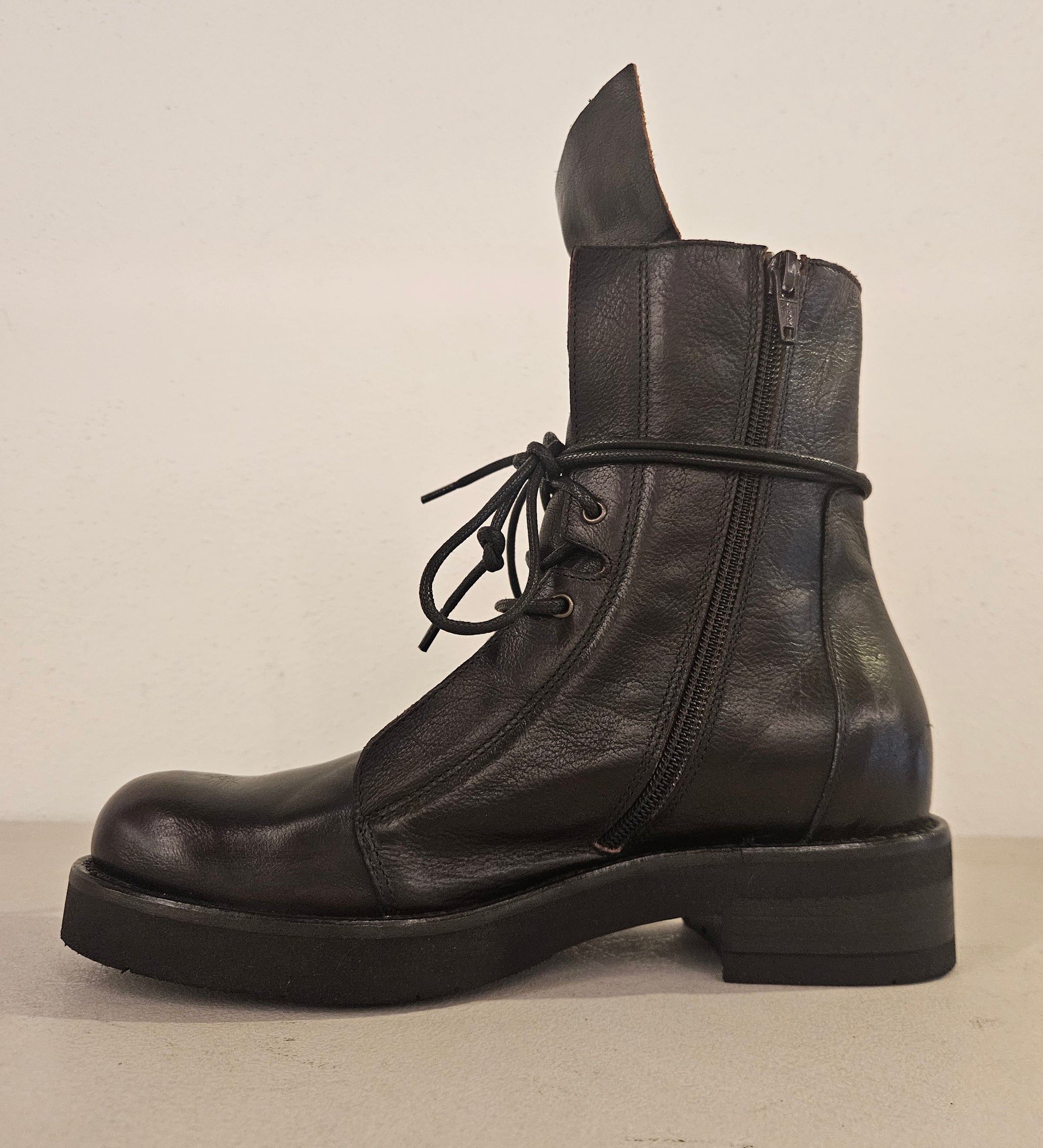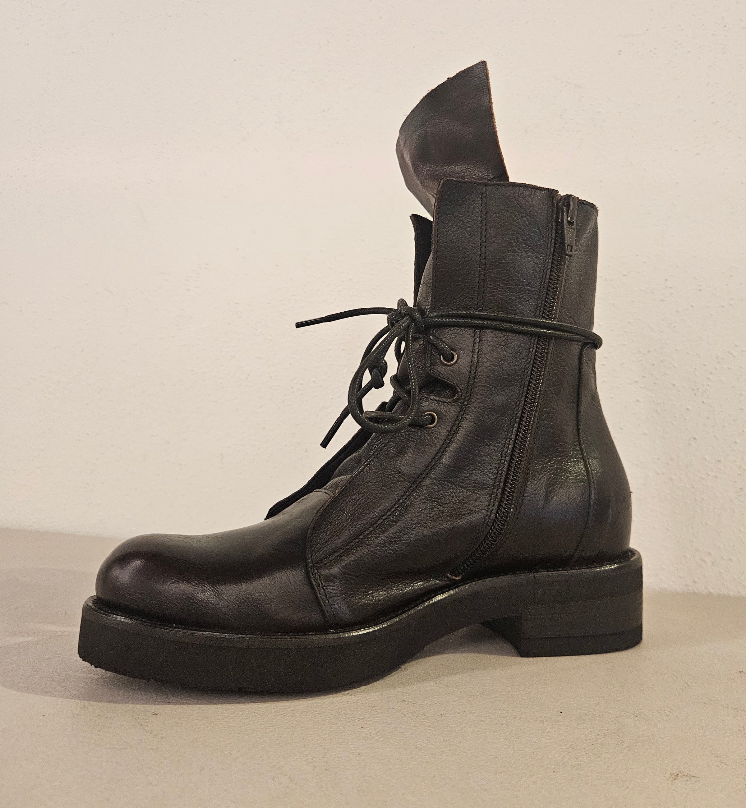 Stivaletto stringato ezip laterale in pelle carly legno fondo gomma
