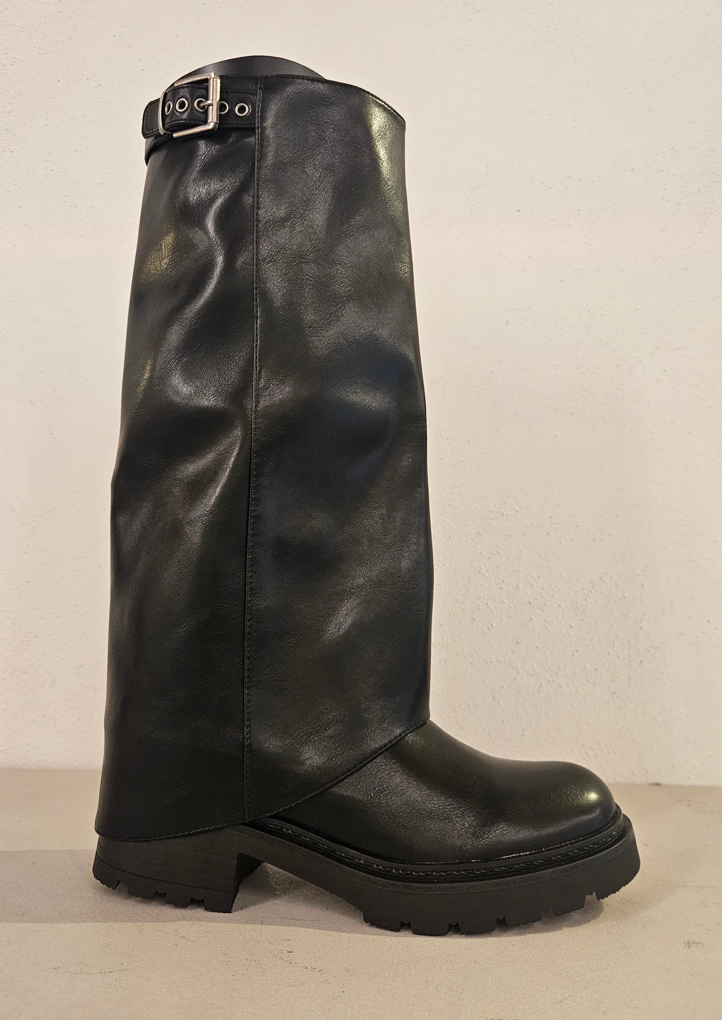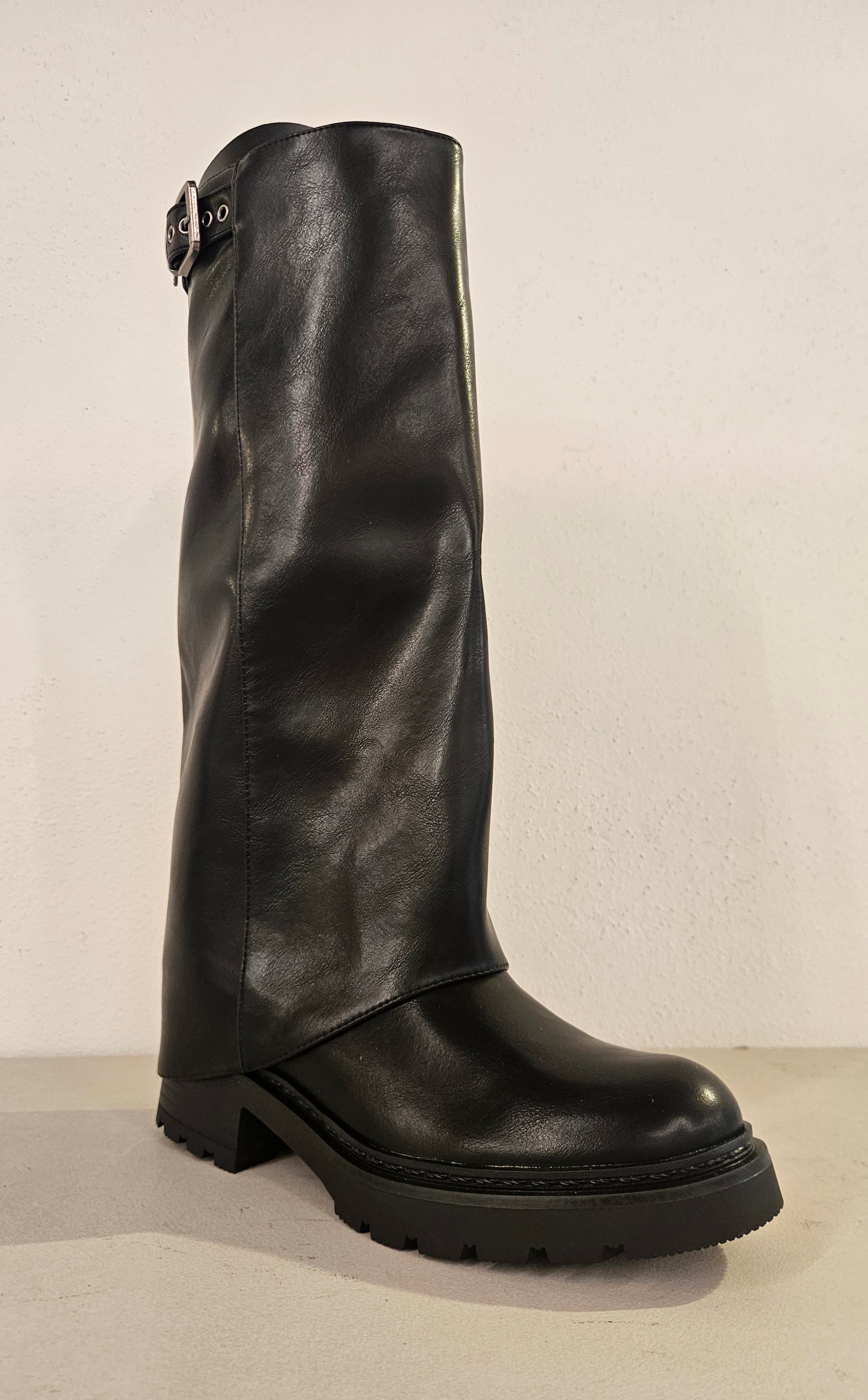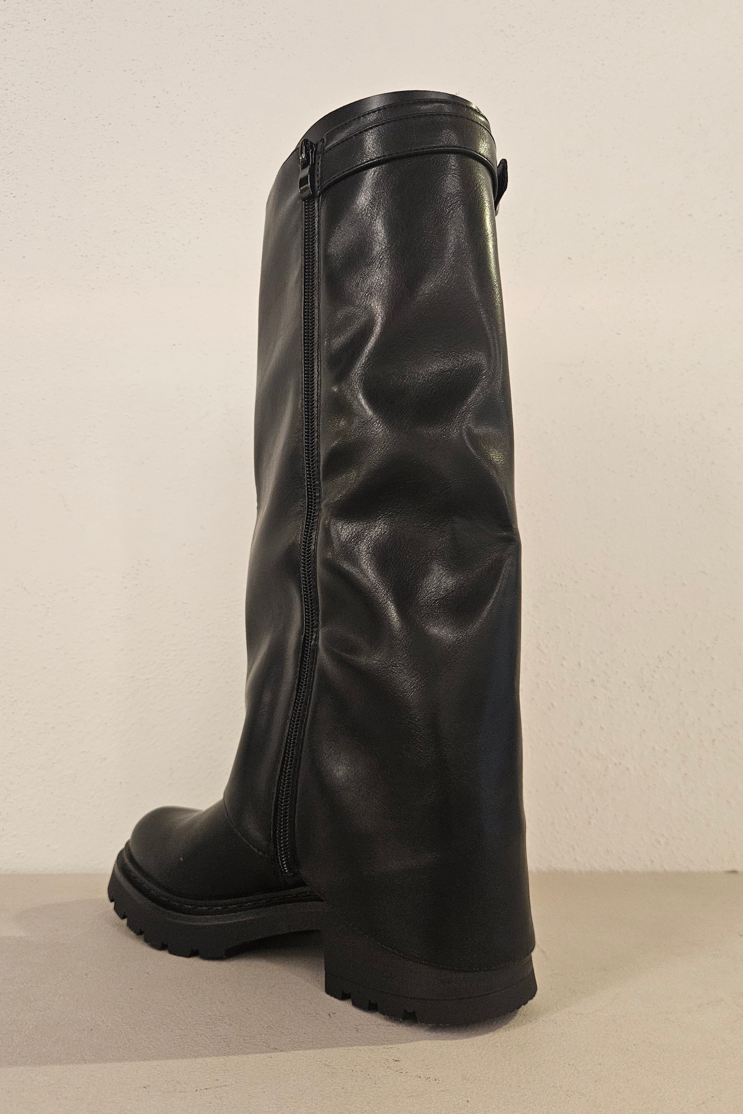 Stivale nero con zip laterale fondo gomma tacco 30