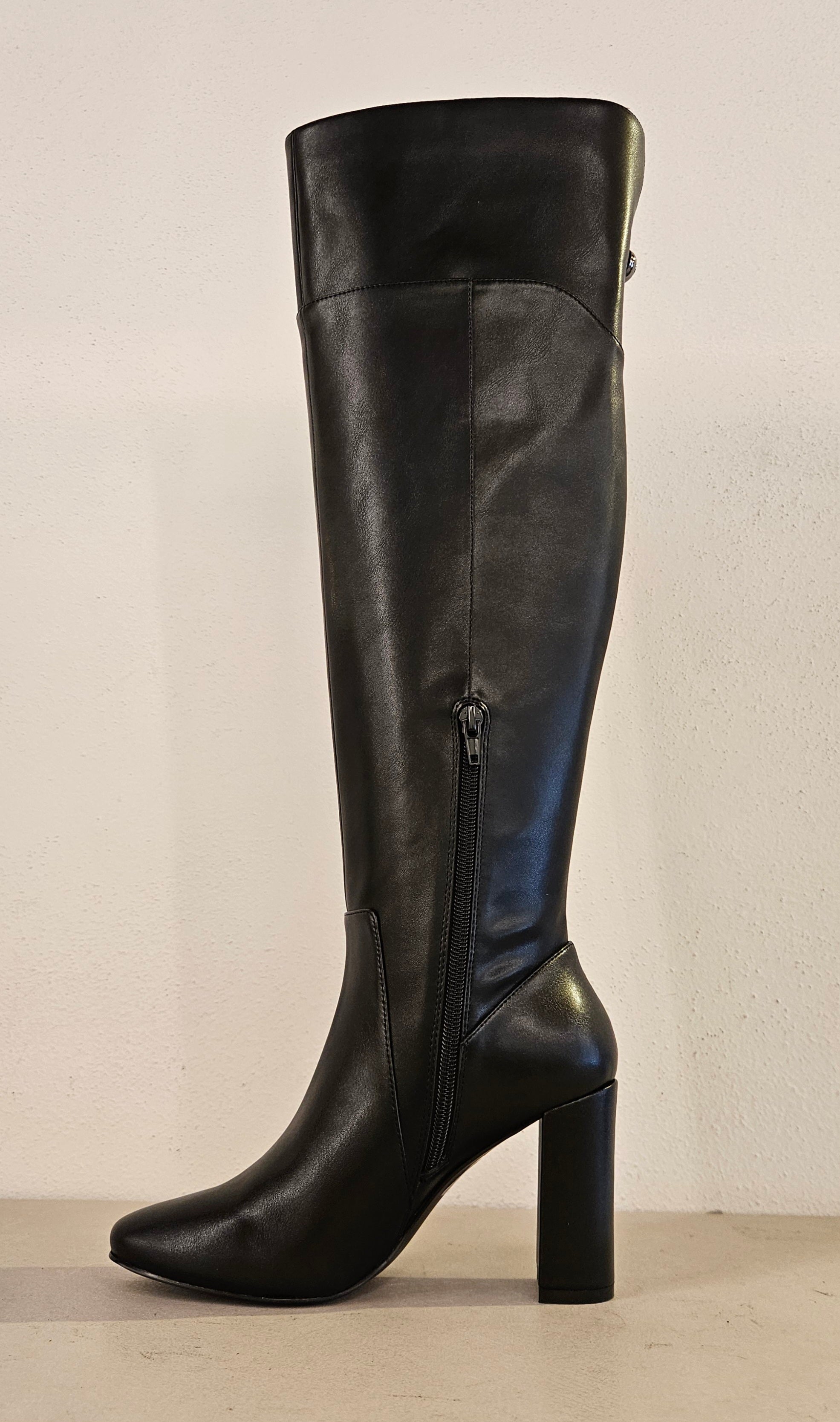 Stivale nero zip laterale bassa tacco 80 gambale sopra al ginocchio