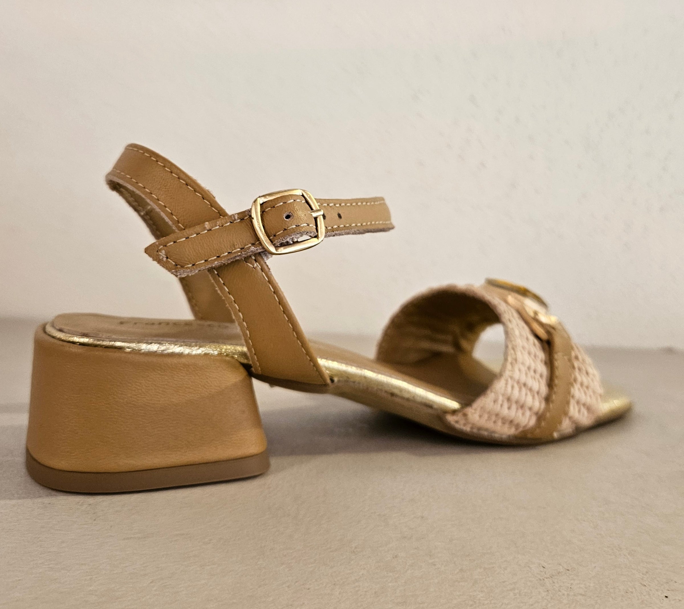 Sandalo innpelle raffia guantino biscotto tacco 40